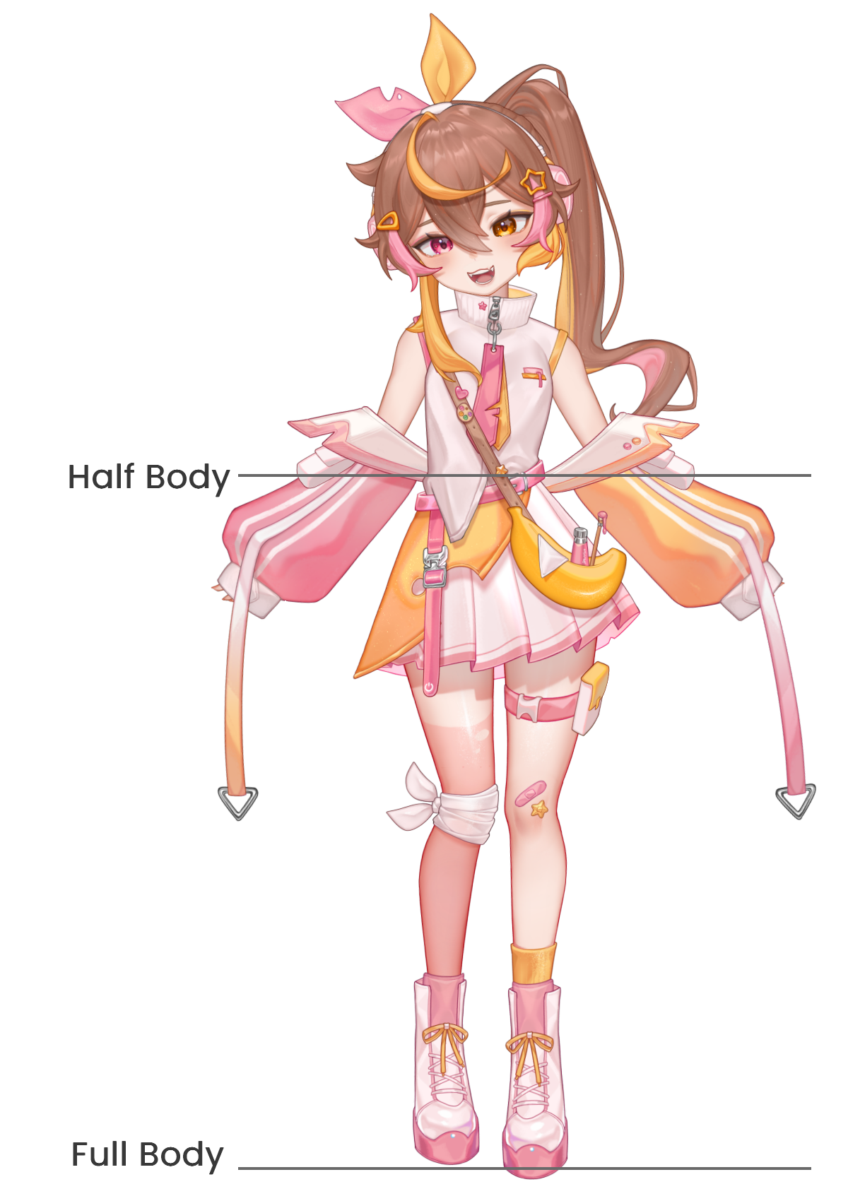 | Work to be used for enjoyment without profit (ex. art for an OC, personal profile picture, etc.) | Work to be used for promotional/streaming purposes on monetized platforms (ex. VTuber branding, music videos, etc.) | Work to be used for merchandise purposes/high-volume sales (ex. commercial products, acrylic keychains, prints, stickers) |